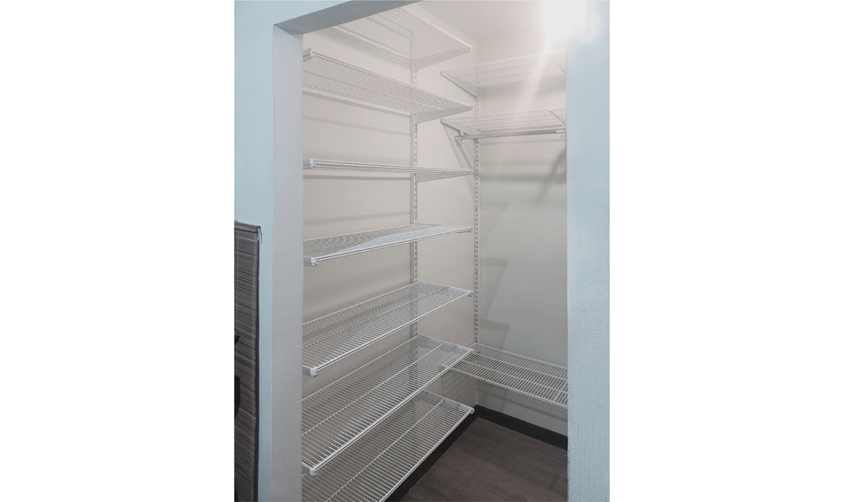- Полки по левой стене от пока до потолка для хранения сезонных вещей в сложенном виде, шапок, шарфов, а также контейнеров и коробок с вещами.